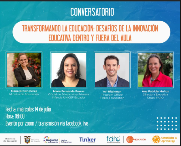 Grupo FARO organiza el conversatorio “Transformando la educación: desafíos de la innovación educativa dentro y fuera del aula”. El objetivo de este evento es reflexionar sobre de qué manera, en el contexto actual, se puede promover la innovación educativa desde las acciones necesarias dentro y fuera de las aulas.