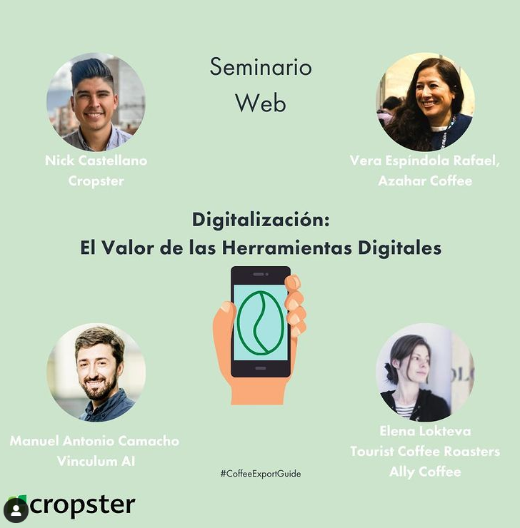 En asociación con el Guía de Exportación de Café del Centro de Comercio Internacional (ITC), nos complace presentar: Digitalización: Comprender el valor de las herramientas digitales y cómo aumentarán la rentabilidad. Únase a nosotros el 7 de septiembre a las 10 am hora del Pacífico para conocer el valor que aportan las herramientas digitales con Vera Espíndola Rafael de Azahar Coffee, Manuel Antonio Camacho de Vinculum AI, y Elena Lokteva de Ally Coffee.