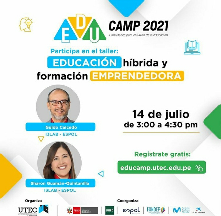 Participa en el taller de educación híbrida y formación emprendedora este 14 de julio, donde nos acompañaran dos profesionales de I3LAB, no te lo pierdas.