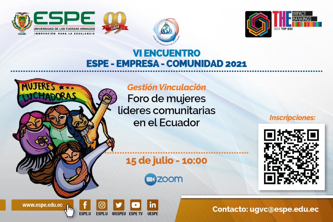 Evento del IV Encuentro ESPE-EMPRESA-COMUNIDAD. Foro Virtual Tema: Foro de mujeres líderes comunitarias en el Ecuador Expositoras: Lideresas parroquiales, de organizaciones, barrios y territorios a nivel nacional.
