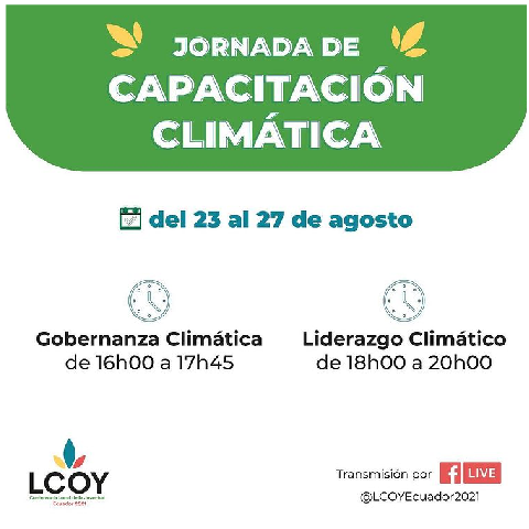 La Jornada de capacitación climática es un evento de la Conferencia Local de la Juventud donde se enseñarán distintos aspectos de las personas que pueden afectar el clima y sobre comportamientos que se pueden mejorar.