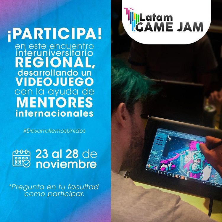¿Te gustaría participar en LATAM Game Jam? Encuentro Interuniversitario Regional. Atrévete a desarrollar un juego con la ayuda de mentores internacionales, pregunta en tu facultad como participar.