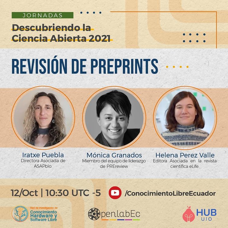 Iratxe Puebla, Mónica Granados y Helena Pérez-Valle conversarán sobre la importancia de los comentarios a los preprints y las oportunidades para innovar en el proceso de peer review.