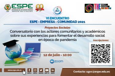 Conversatorio Web Tema: Conversatorio actores comunitarios y académicos - experiencias para fomentar el desarrollo social en época de pandemia. Expositores: Líderes y actores comunitarios, coordinadores académicos de la UFA-ESPE.