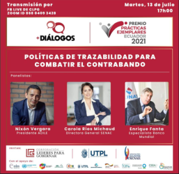 Junto a expertos de Servicio Nacional de Aduana del Ecuador, ADILE y Banco Mundial nos encontraremos este 13 de julio en #MásDiálogos para hablar sobre un estudio realizado por Universidad Técnica Particular de Loja - UTPL y UNAM UNAM Universidad Nacional Autónoma de México del impacto del Sistema SIMAR y del Sistema de Gestión y Verificación de Etiquetas Fiscales (SIGVEF) del SENAE. Te esperamos en el webinar: “Políticas de Trazabilidad para combatir el contrabando”.