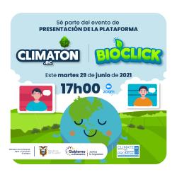 Este martes 29 de junio a las 17:00 te esperamos para el lanzamiento de Climaton EC y BioClick, una iniciativa impulsada por el @ambienteec a través del Programa de apoyo a la NDC implementado con el apoyo del PNUD Ecuador, con el fin de lograr que la ciudadanía sea parte de nuevos procesos y soluciones para enfrentar el cambio climático en nuestro país. Regístrate en: http://bit.ly/Bioclick