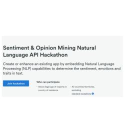 Sentiment & Opinion Mining Natural Language API Hackathon: Create or enhance an existing app by embedding natural Language Processing (NLP) capabilities to determine the sentiment, emotions and traits in text.