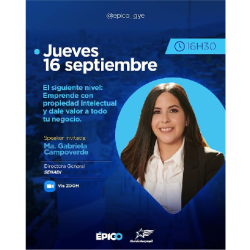 En este nuevo webinar de Épico la speaker Ma. Gabriela Campoverde conversará sobre como avanzar al siguiente nivel y emprender con propiedad intelectual y dale valor a todo tu negocio.